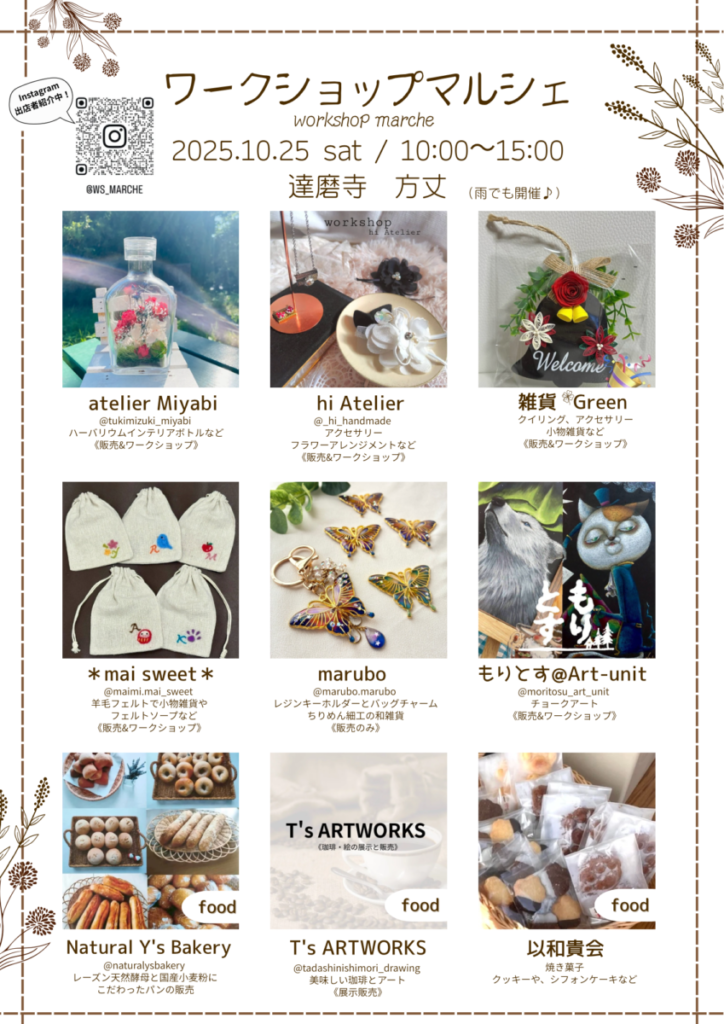 大人も子供も、ワークショップが楽しめるマルシェを王寺町の達磨寺方丈で開催。