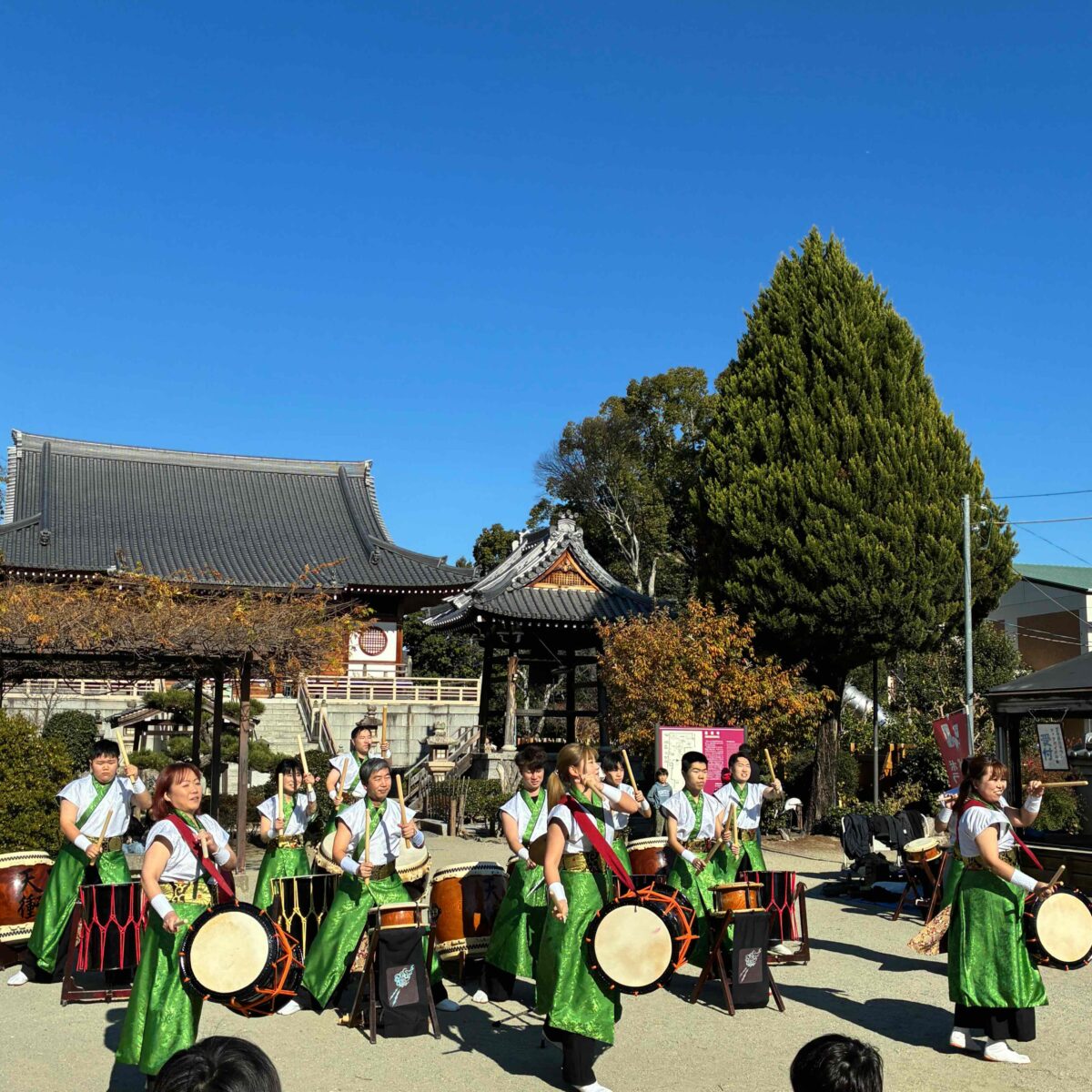 2周年の記念イベントとして、12月のだるまマーケットでは和太鼓の演奏と体験を開催しました。