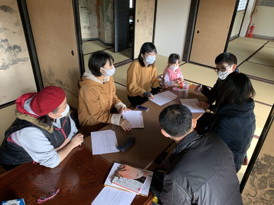 気持ちがほぐれたところで、まずは、自己紹介を行います。紙に「名前、居住地、達磨寺方丈ファンクラブに期待すること、または、やりたいこと」を書いて一人一人自己紹介を行います。
